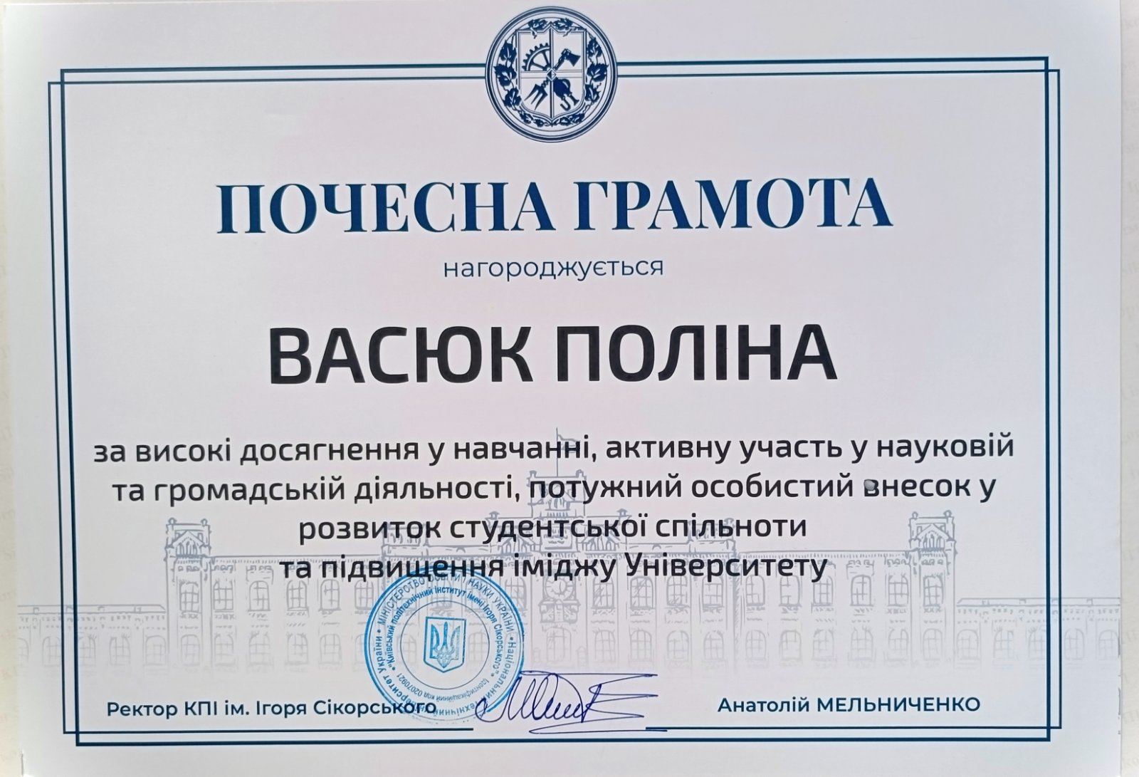 Колектив кафедри ІВТ щиро вітає Поліну та Івана з заслуженими нагородами! Ваші досягнення – це гордість нашої кафедри та приклад для інших студентів.